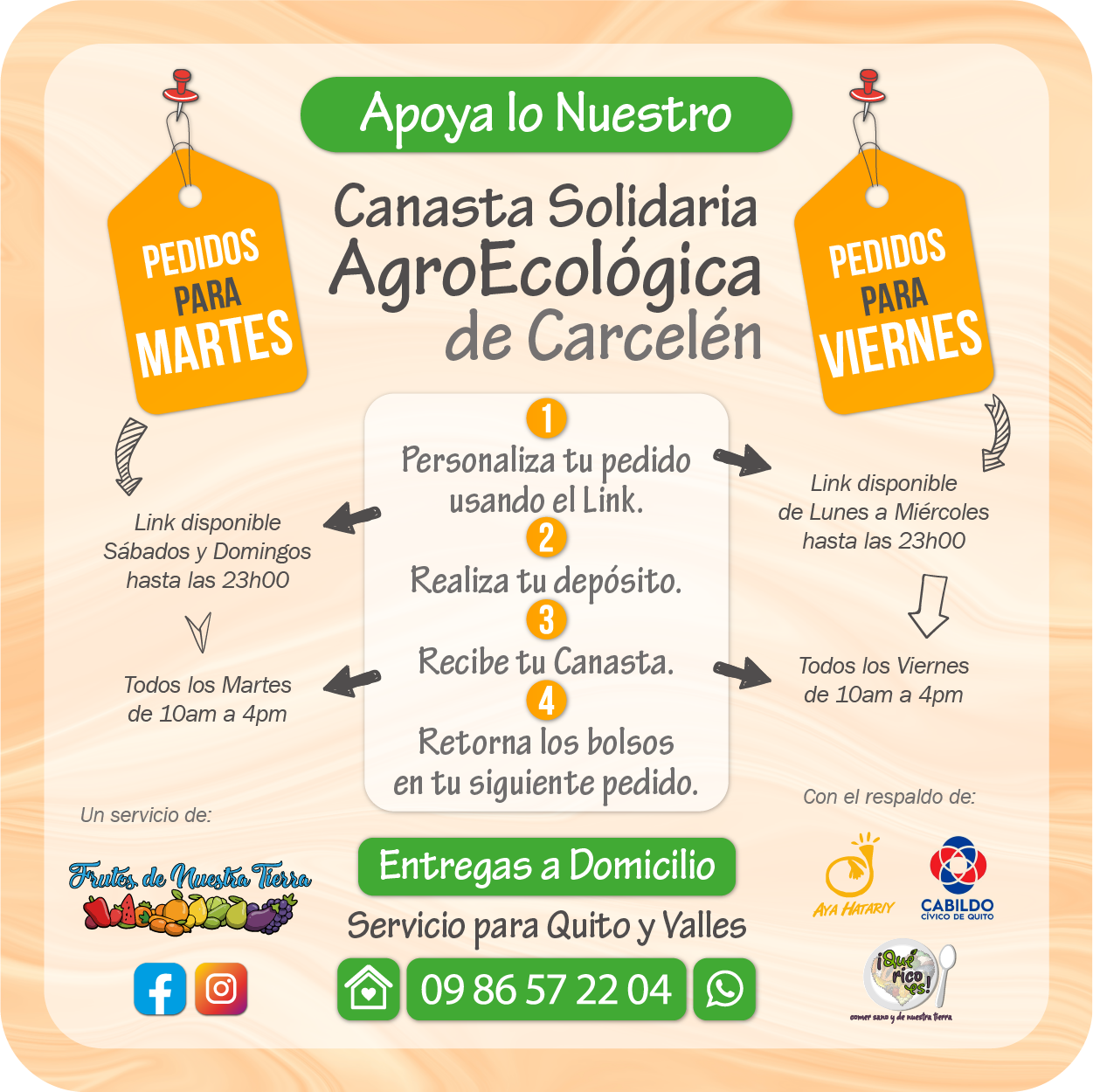 Días de pedido: Sábados y Domingos. Entregas: Martes.